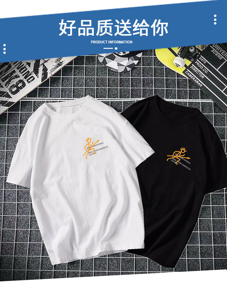 【100%純棉】2021春季爆款t恤男士韓版字母標兵印花短袖圓領T恤男