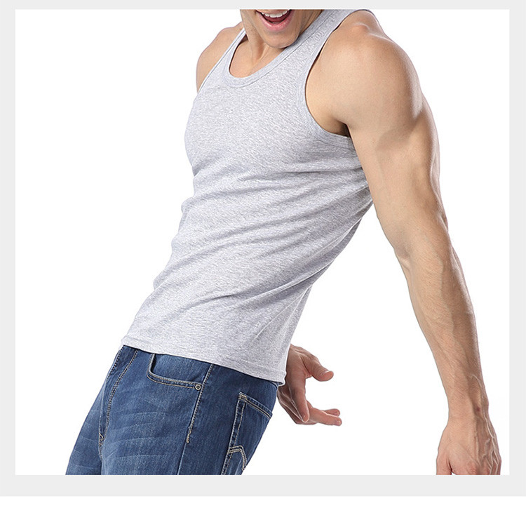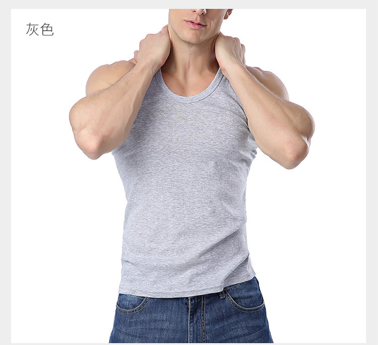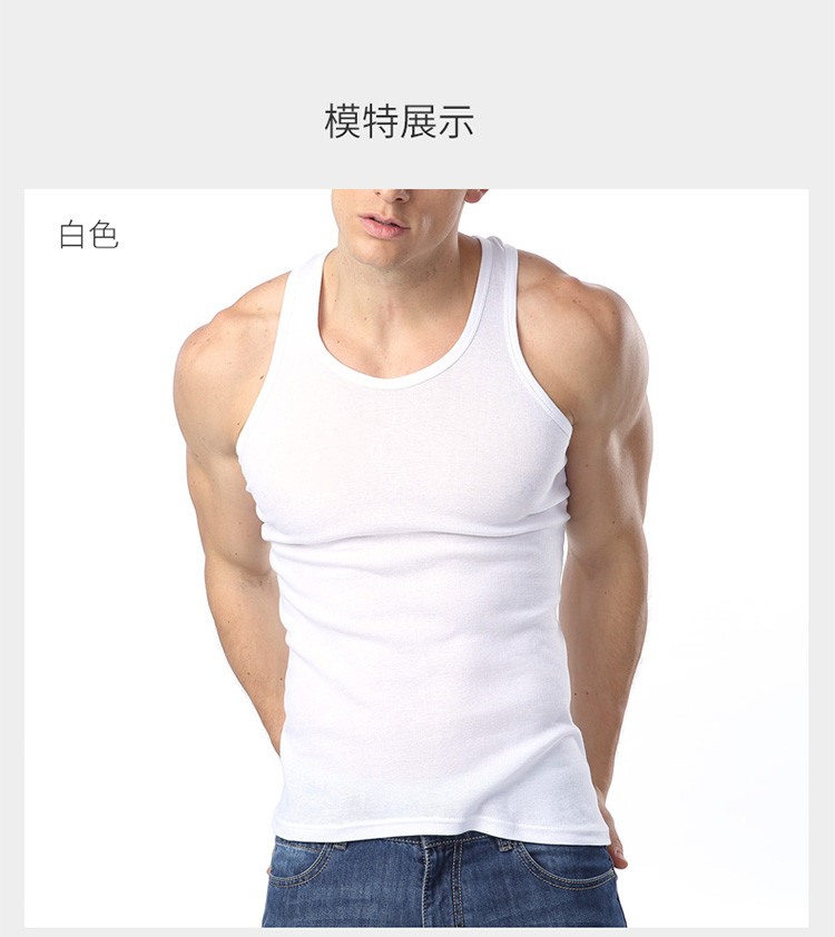 男士純色吸汗運動純棉羅紋圓領背心
