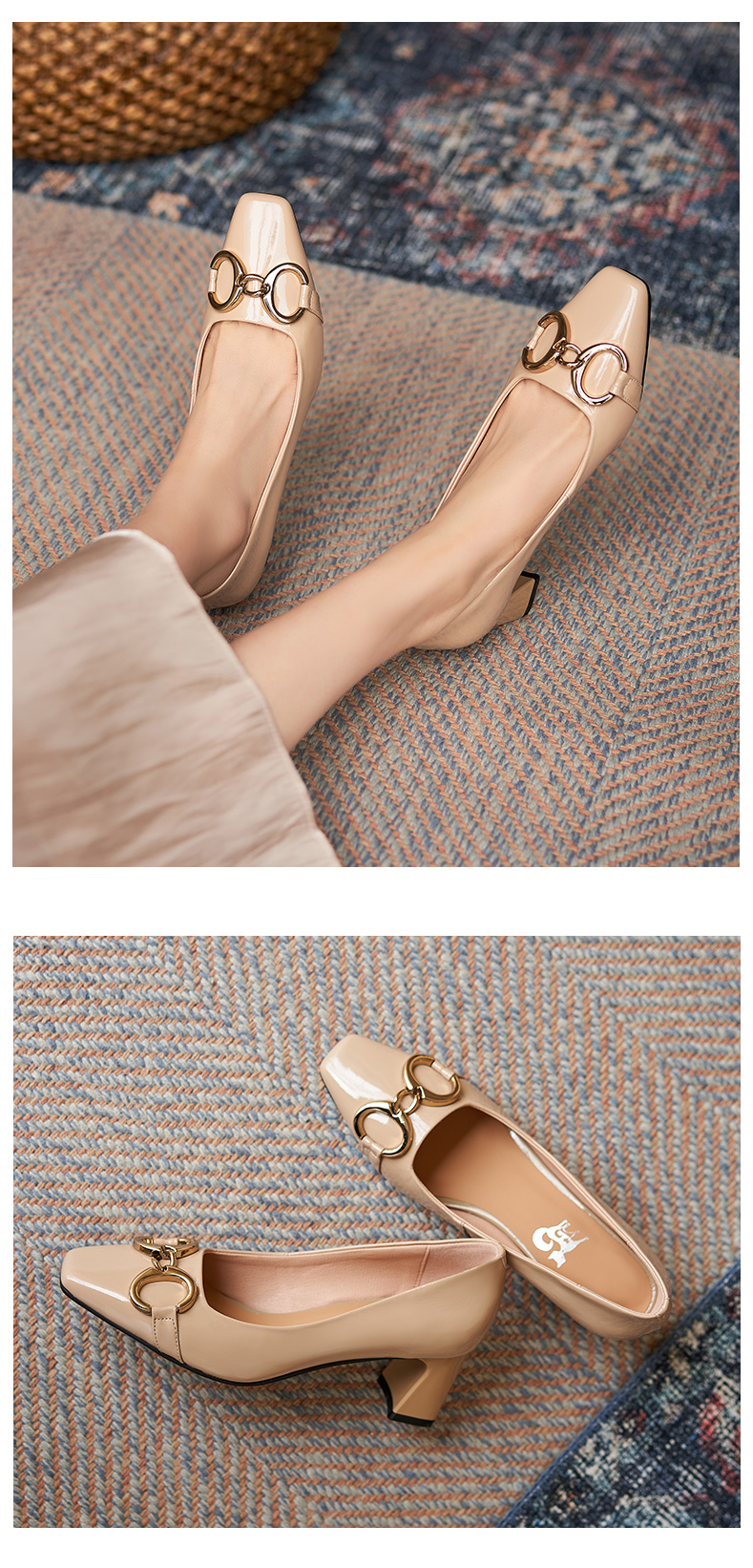 淺口高跟鞋女春夏鞋子2021新款英倫小皮鞋一腳蹬方頭真皮粗跟單鞋