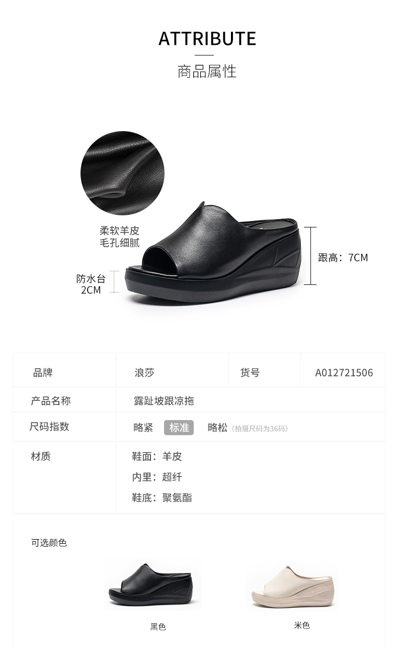 浪莎坡跟涼拖女外穿2021春新款夏天時尚高跟真皮懶人厚底魚嘴拖鞋