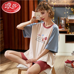 浪莎純棉睡衣女士夏季薄款短袖短褲可愛日系兩件套裝可外穿家居服
