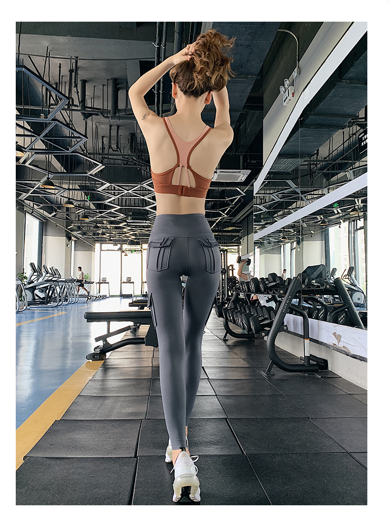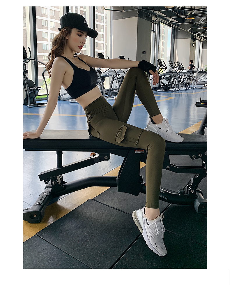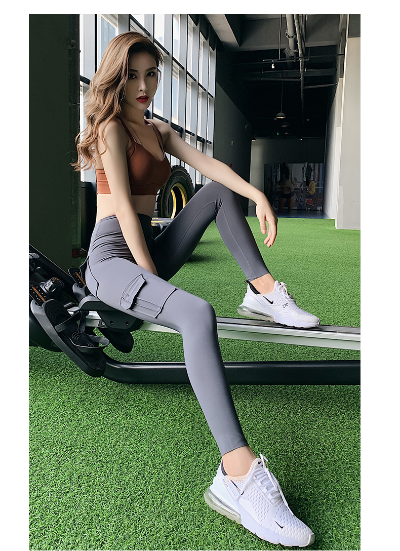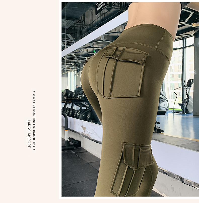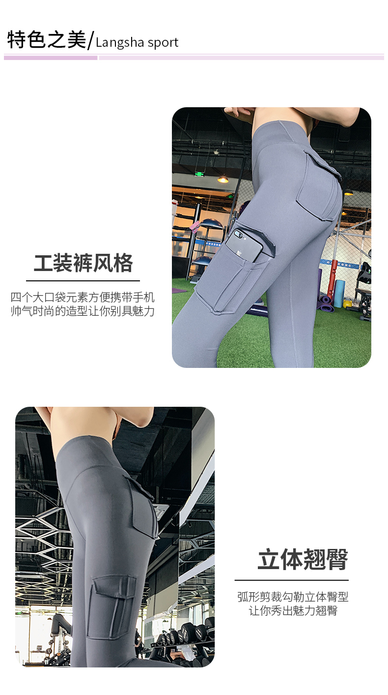 浪莎蜜桃健身褲女彈力緊身速干跑步運(yùn)動(dòng)褲提臀高腰收腹工裝瑜伽褲
