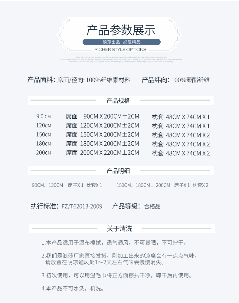 浪莎涼席冰絲席三件套1.8m床夏季1.5米折疊雙單人1.2學(xué)生宿舍席子