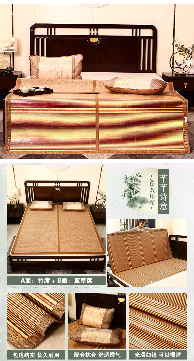 夏季碳化竹席可折疊席子單雙人宿舍1.5米1.8m床空調涼席雙面可用
