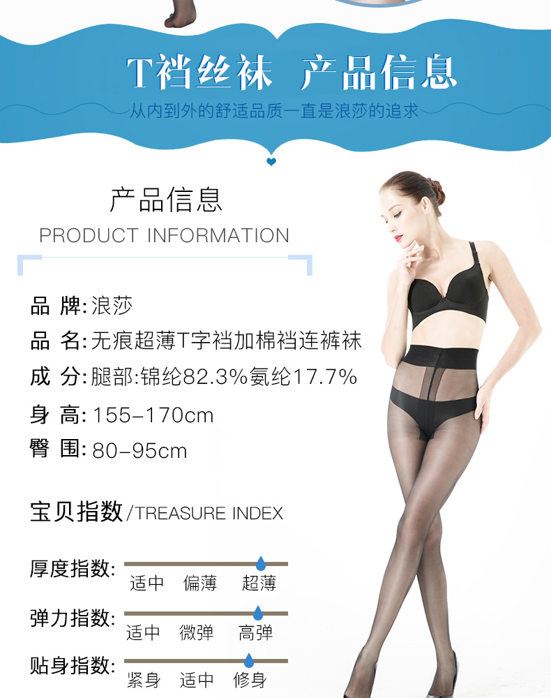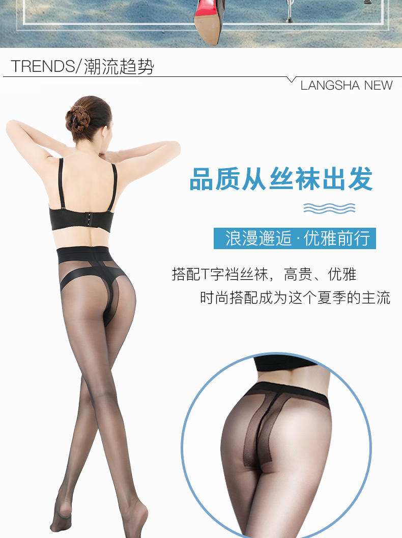 浪莎T襠絲襪女防勾絲 超薄款性感隱形無痕連褲襪 夏季黑絲襪