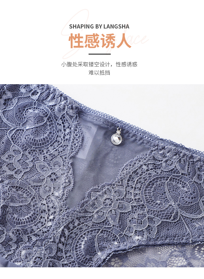 浪莎蕾絲內褲女士性惑春夏款純棉底襠性感無痕透氣鏤空三角短褲頭