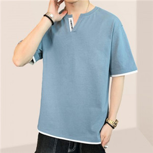 【純棉舒適】2021夏季新款男士V領假兩件百搭透氣短袖T恤